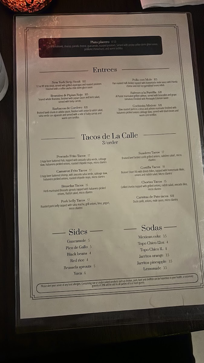 “ Came here with some friends for dinner and I was truly blown away. We had queso fundito as an appetizer, then duck confit tacos, pork belly tacos, and a pork roast for mains. This was some of the best seasoned and roasted meat I’ve had in a while, incredibly tender and flavorful. Finally, we had tres leches cake, churros, and flan. While all three were delicious, you absolutely MUST get the tres leches cake. Truly incredible experience, look forward to coming back. ”